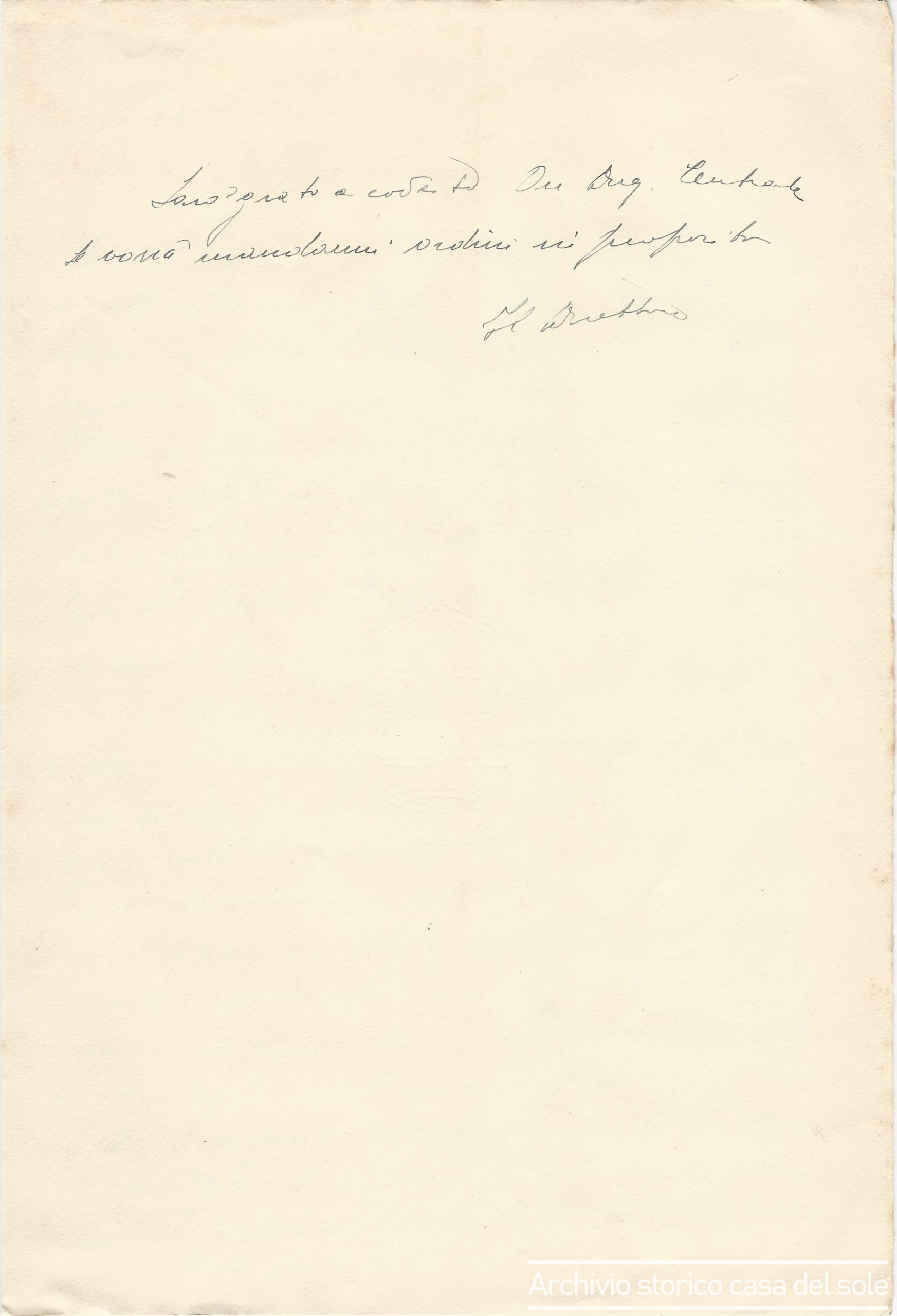 Lettera del direttore del Convitto Casa del Sole alla direzione generale per informare dei rischi che corrono i convittori nel tragitto domenicale verso la chiesa di Turro per assistere alla messa. Tali rischi sono dovuti alla presenza dei genitori che avvicinano i bambini, li accarezzano, li baciano e li colmano di dolciumi, compromettendo i principi profilattici della Casa del Sole.