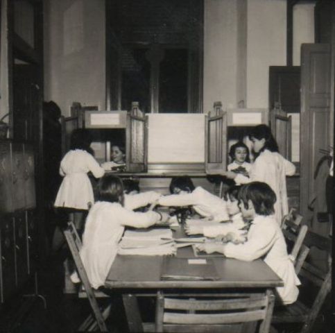 Descrizione breveI bambini responsabili della Cassa di Risparmio "Casa del Sole" si occupano della gestione dell'attività. Sullo sfondo sono visibili le bambine responsabili degli sportelli "DEPOSITI-PRELIEVI" (a sinistra) e "CASSA" (a destra) alle prese con dei clienti. |