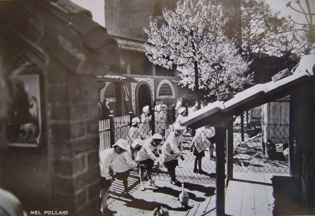 Descrizione breveCooperativa "Chicchirichì". Le bambine danno da mangiare alle galline nel pollaio all'interno della fattoria. |