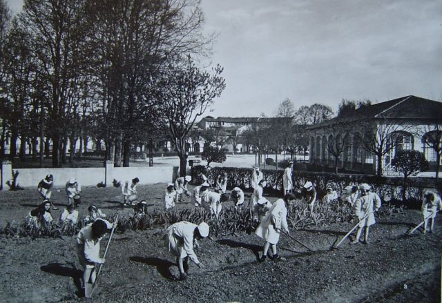 Descrizione breveCooperativa "Flores". Le bambine coltivano i fiori: si occupano delle piantine e del terreno. Sulla destra è visibile il solarium (attuale palestra). |
