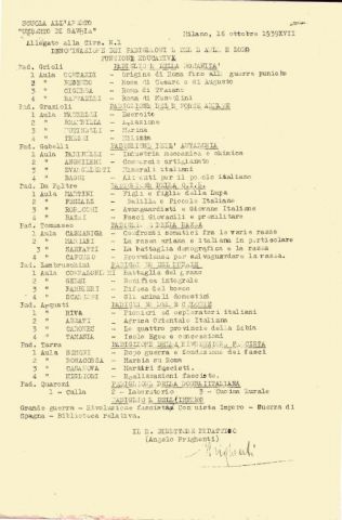 Denominazione di padiglioni e aule modificate nell'anno scolastico1938-39 per "funzione educativa".